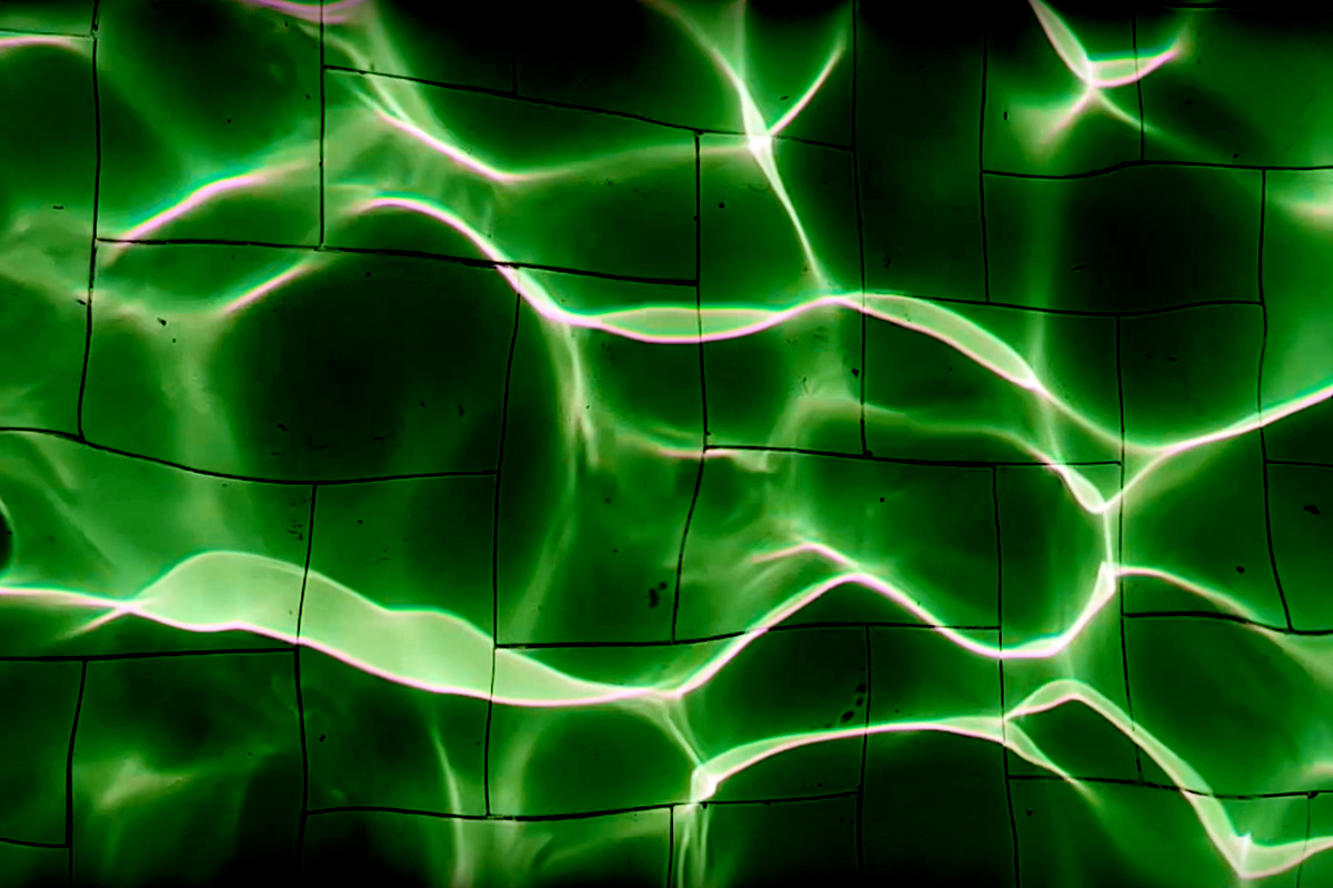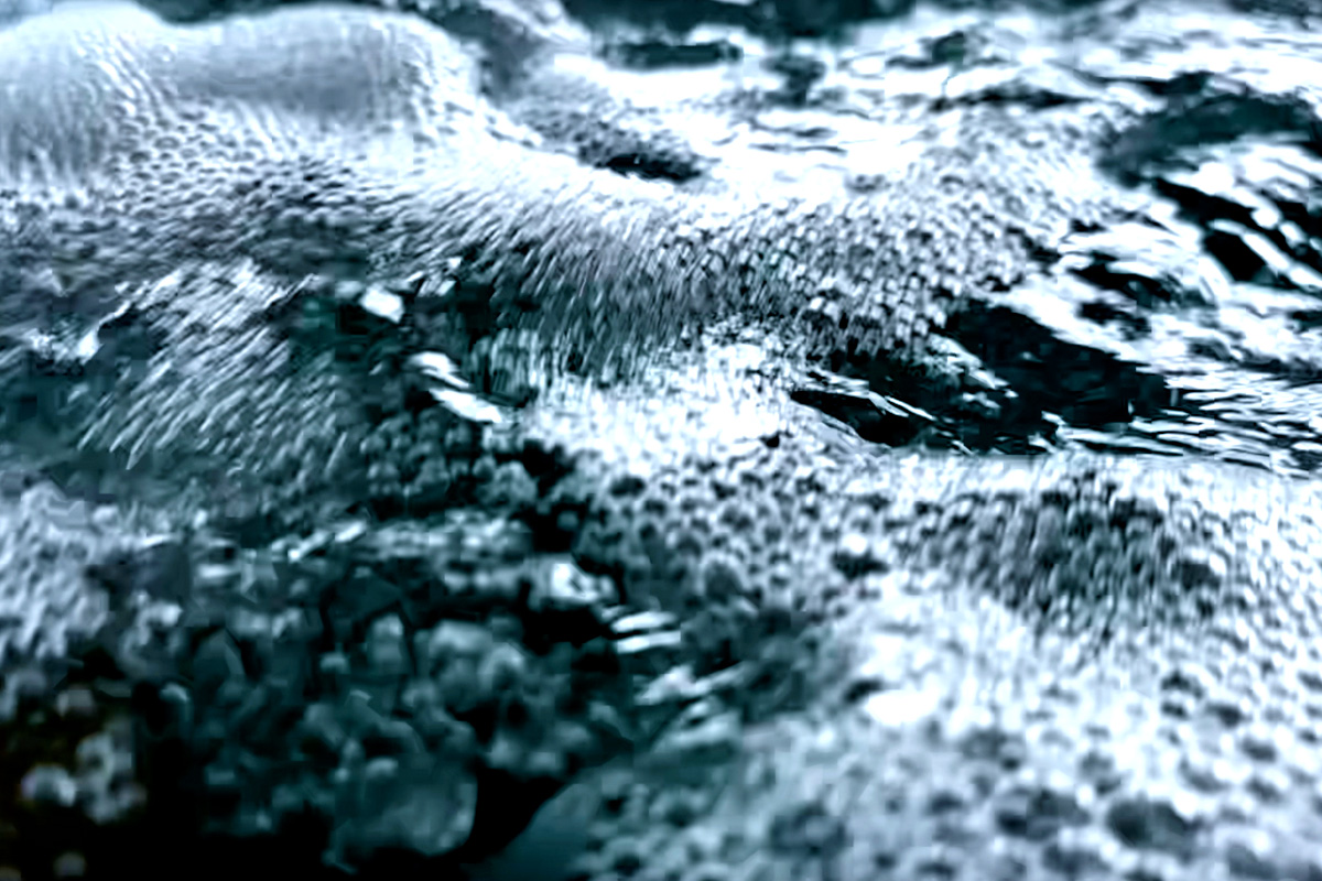 The visual content is drawn from water, air, and other fluid natural forces and unfolds in sequences that never fully repeat. An interactive element extends this experience through a gesture sensor at a central kiosk. With simple hand motions,, participants “zoom” the projected visuals, shifting imagery from macro detail to microscopic abstraction.